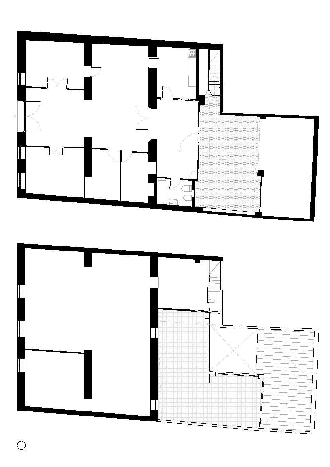 En planta primera se resuelve un pequeño espacio de almacenamiento y una segunda vivienda, que debe guardar cierta privacidad de vistas con la vivienda de planta baja.