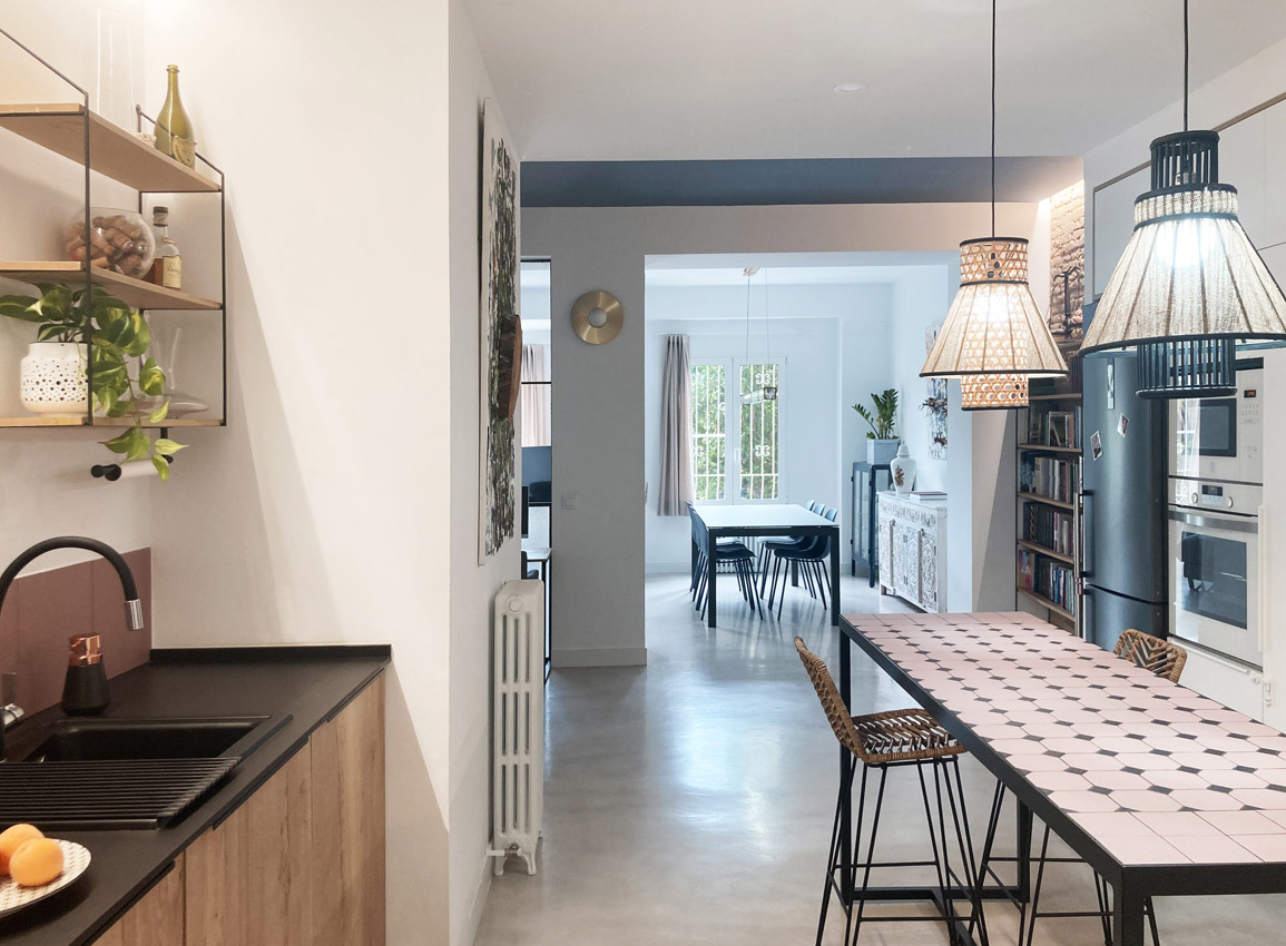 Entre las necesidades del cliente encontramos: conseguir una zona de estudio y una cocina que participe de la zona de día, almacenamiento extra y disfrutar de un segundo baño.