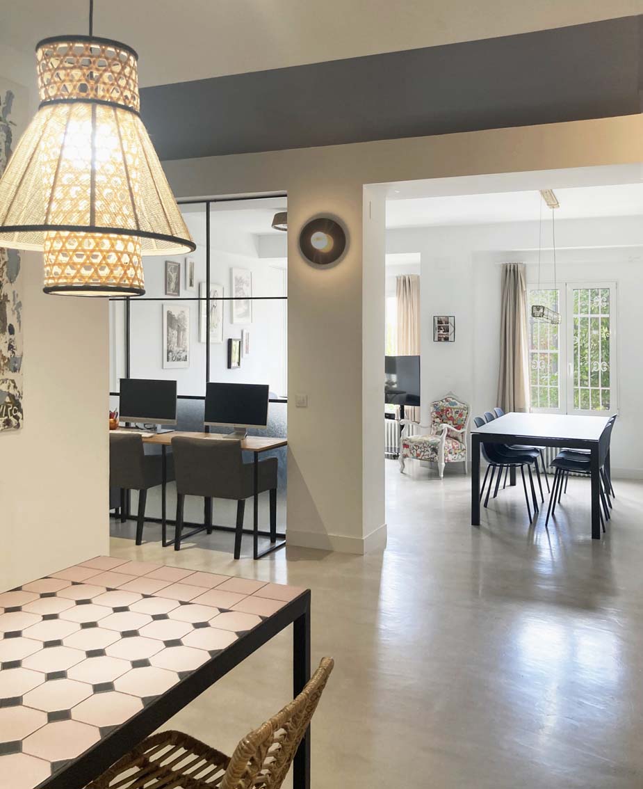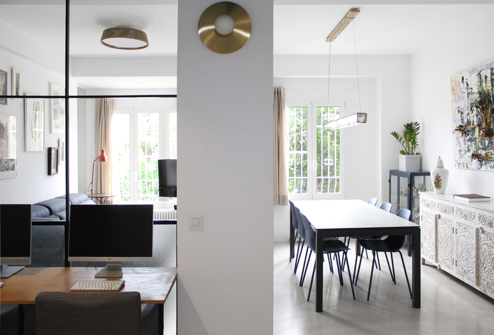 La clave de la nueva distribución reside en entender la circulación como transición natural entre las diferentes estancias en vez de como espacio independiente de las mismas. El concepto de umbral se ensancha para desplazar la unidireccionalidad del paso estricto y permitir que la luz achaflanada y contenida en los límites del antiguo salón pueda derramarse y aprovecharse al máximo.