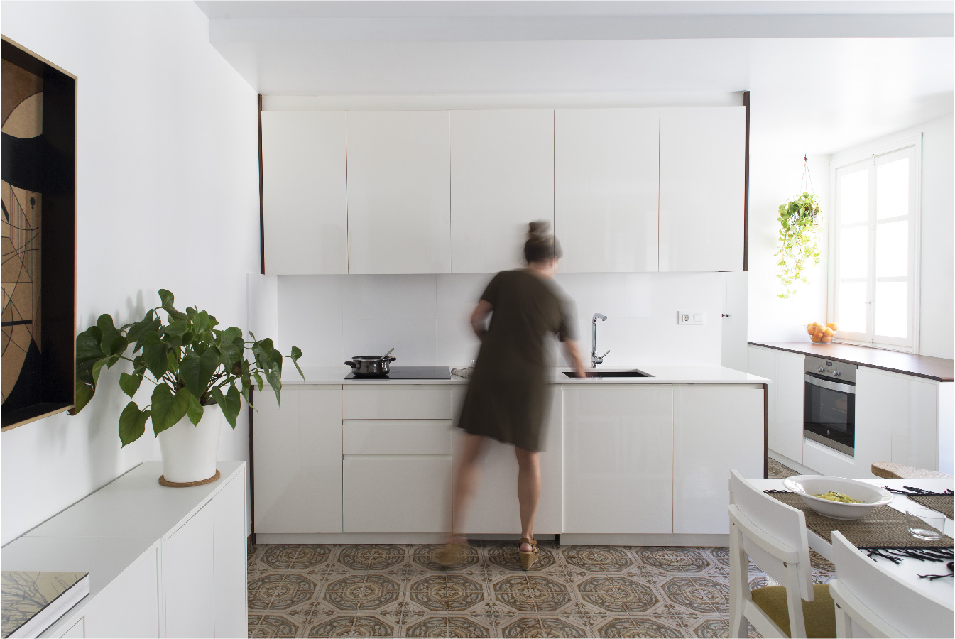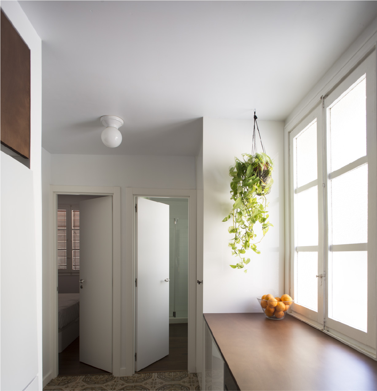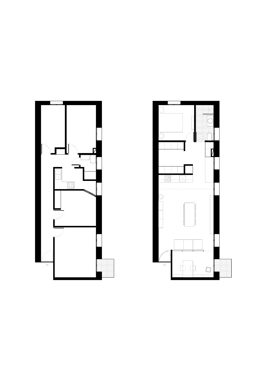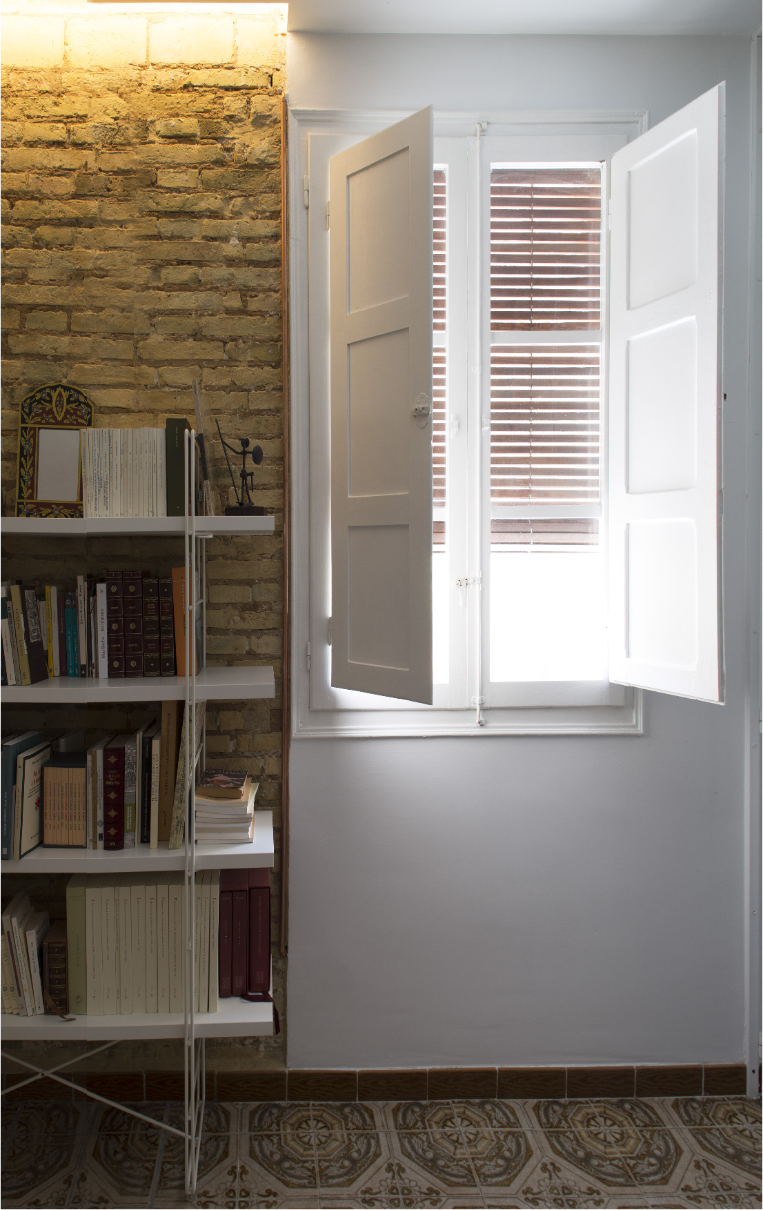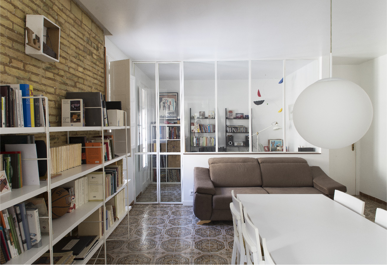 Nos encontramos con una pequeña vivienda social de los años 50, de estructura de muros de carga de ladrillo macizo y una disposición de grandes huecos a fachada. La vivienda origen no permitía del todo ver la sobriedad y la luz del espacio que encerraban los muros, pero se respiraba la calidad de una arquitectura bien concebida que el proyecto debía poner en valor.